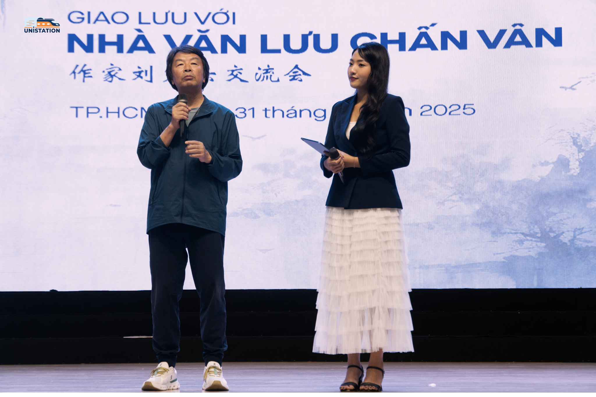 Sự kiện giao lưu có sự hiện diện của Tổng Lãnh sự Trung Quốc tại TP.HCM – ông Từ Châu, cùng các lãnh sự, khách mời và đại diện Ban Giám hiệu nhà trường. Sau phần phát biểu, nhà văn Lưu Chấn Vân đã có những chia sẻ truyền cảm hứng về nghề viết, cách ông tìm chất liệu từ cuộc sống và quan điểm “một tác phẩm hay phải mang sự thật của trái tim”.