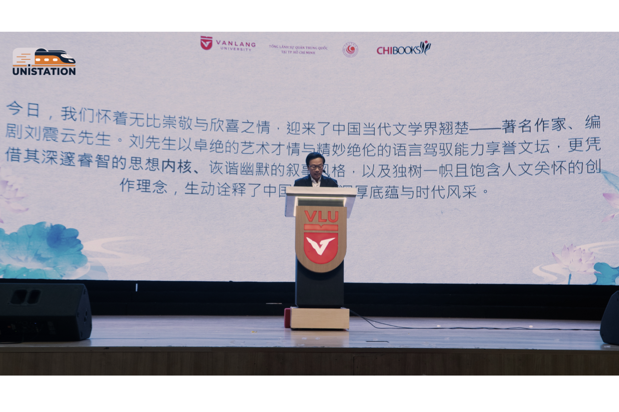 Sáng ngày 31/10/2025, Trường Đại học Văn Lang tổ chức sự kiện giao lưu văn học đặc biệt với sự tham dự của nhà văn – biên kịch nổi tiếng Trung Quốc Lưu Chấn Vân. Sự kiện do Khoa Khoa học Xã hội và Nhân văn phối hợp cùng Công ty Cổ phần Văn hóa Chi tổ chức, thu hút đông đảo sinh viên các ngành Văn học, Ngôn ngữ Trung và Quan hệ công chúng – Truyền thông.